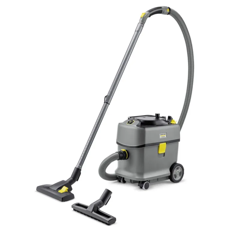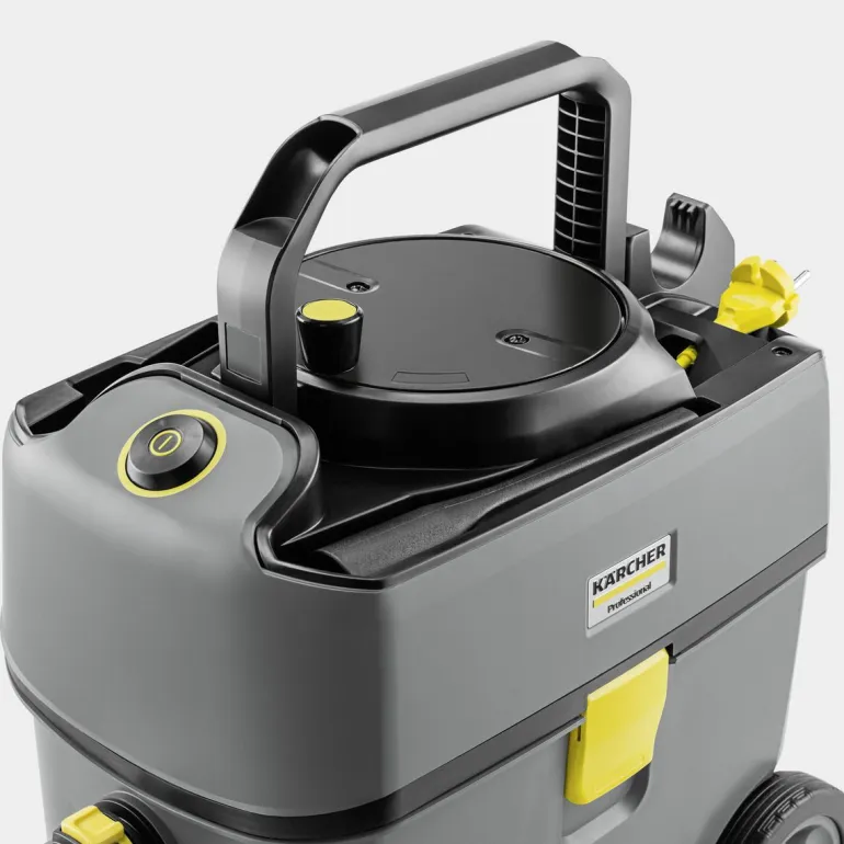 Kärcher T 15/1 Adv HEPA -pölynimuri erottuu ensiluokkaisella imutehollaan, erittäin hiljaisella käynnillään, kestävyydellään, vaikuttavalla hinta–suorituskyky-suhteellaan ja laajalla lisävarustevalikoimallaan. HEPA 14 -suodattimen ansiosta se täyttää korkeimmat turvallisuusstandardit hygieniaherkissä ympäristöissä. Kestävä ja tukeva rakenne törmäyssuojalla ja reilun kokoisilla pyörillä. Uusi tuotantotekniikka mahdollistaa sen, että imurin muoviosista peräti 45 % on valmistettu kierrätysmuovista lujuusominaisuuksista tinkimättä. Vain 52 dB(A):n äänitaso yhdistettynä suureen imutehoon tekee T 15/1 Adv HEPA -mallista ihanteellisen päivittäiseen ammattisiivoukseen ja ääniherkkiin ympäristöihin. Laite on kompakti kaatumista ehkäisevällä muotoilulla, helposti ohjattava, ja sen säiliön tilavuus on 15 litraa. Taitettava kantokahva mahdollistaa ergonomisen kantamisen lähellä vartaloa. Tilava 15 litran säiliö on muotoiltu siten, että imurin kuljettaminen ja säilyttäminen on mahdollisimman helppoa. Rungon kapean muodon ansiosta painopiste asettuu kannettaessa lähelle kehoa.