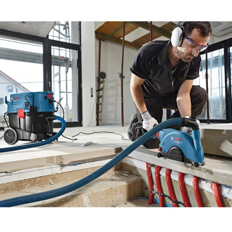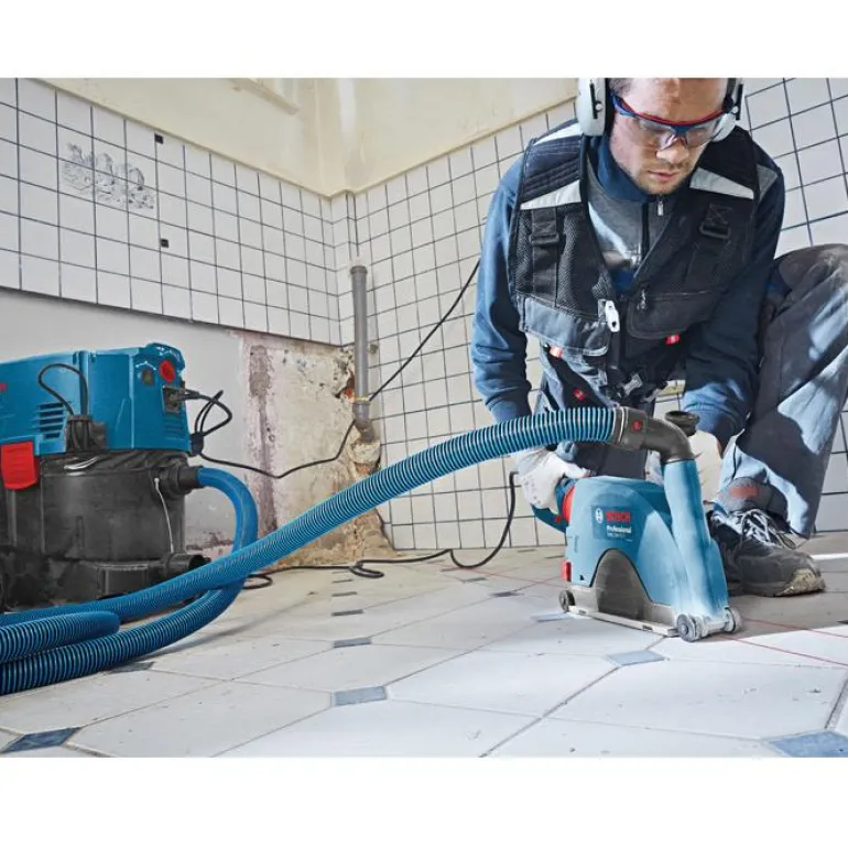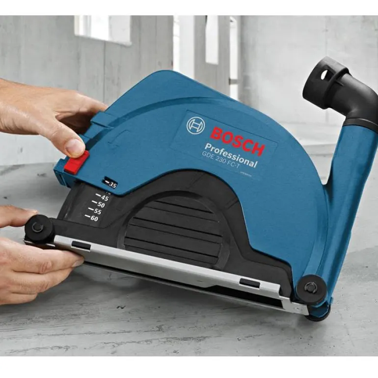 Pölyadapteri pölytöntä katkaisua varten. Sopii Bosch-kulmahiomakoneille, joiden laikan halkaisija on 230mm.