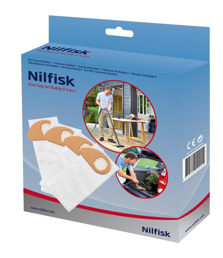 Nilfisk 81943048 suodatinpussi, joka sopii kaikkiin Nilfisk Buddy-pölynimureihin. Toimitetaan 4-pakkauksessa.