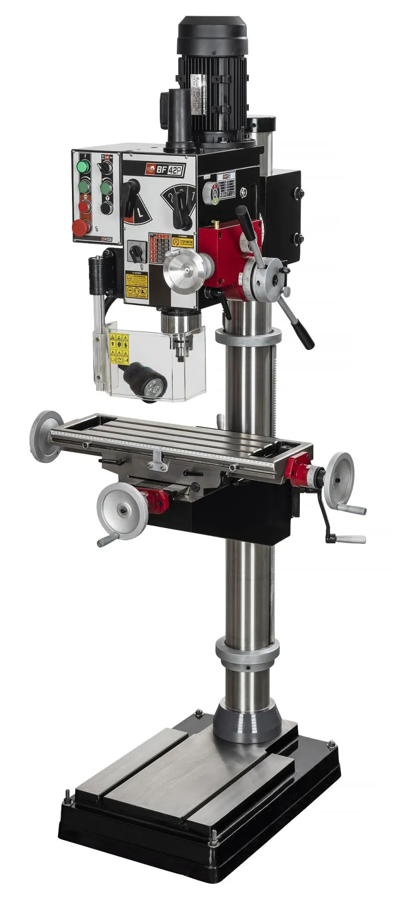 PELA BF42P on yhdistetty pora- ja jyrsinkone, pinolisyöttö. Soveltuu poraukseen ja pieniin jyrsintätehtäviin. Porapäätä ja koordinaattipöytää nostetaan/lasketaan manuaalisesti. Varustettu tehokkaalla 2-nopeuksisella moottorilla, jossa on moottorin suojaus, karan syötöllä, työvalaisimella, valmiilla jäähdytysnesteliitännällä sekä erityisellä kierteitystoiminnolla. Työstetty pohjalevy T-uralla. Porapäätä voidaan kallistaa 0-90° vasemmalle ja oikealle sekä kiertää 360° pylvään ympäri.