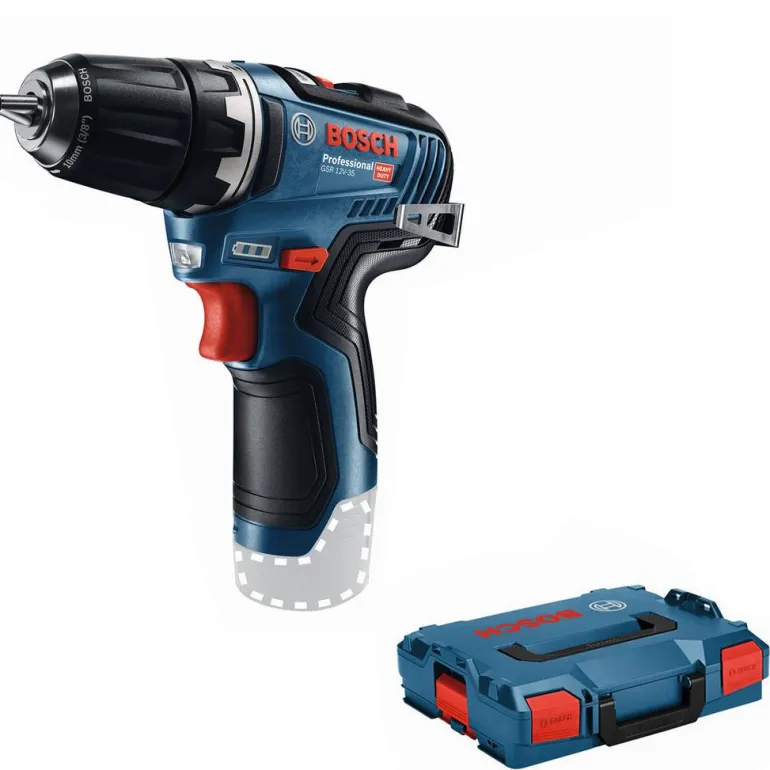 12V:n porakone-ruuvinväännin, kierrosluku jopa 1750 kierr./min, kova vääntömomentti 35 Nm.