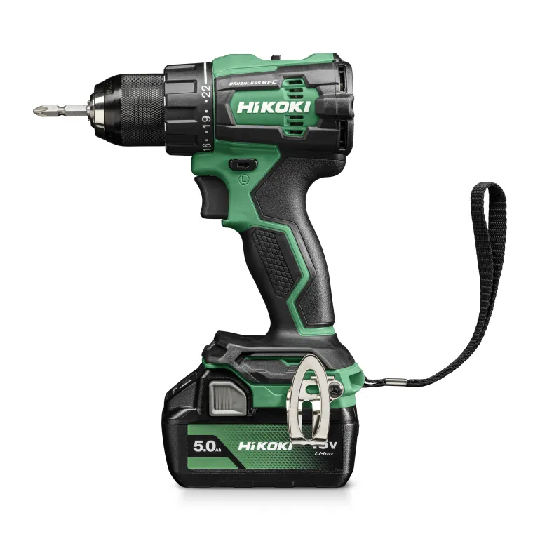 HiKOKIn 18 V-akkuporakone lyhyellä konerungolla ja erinomaisella tasapainolla. Hiiliharjaton moottori pidentää koneen käyttöaikaa latausten välillä, huoltoväliä sekä koneen käyttöikää. Nopeus kuormittamatta 0-2.000/min ja maks. vääntömomentti 70 Nm. RFC-turvatoiminto (Reactive Force Control) pysäyttää moottorin terän juuttuessa ja estää näin ranteiden vääntymisen. DS18DE on lisäksi varustettu ergonomisella, kumipäällystetyllä kahvalla ja LED-valolla. Toimitus sisältää kaksi 5,0 Ah Li-ion-akkua, laturin ja pinottavan säilytyslaukun (HSC2).