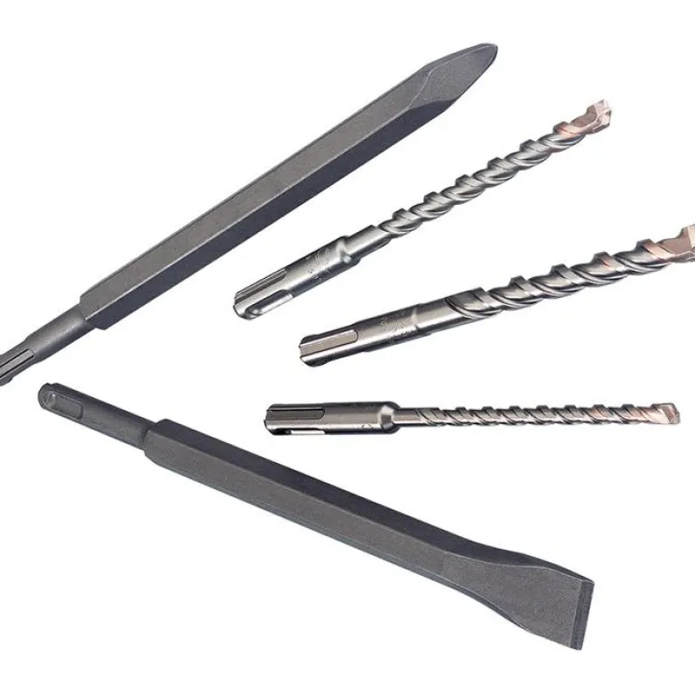 5-osainen SDS-plus-poranterä- ja talttasarja, soveltuu betonille, muurauksille, luonnonkivelle ja graniitille. Taltan muotoinen porapää, jonka erityinen teränmuoto nopeuttaa porausta.