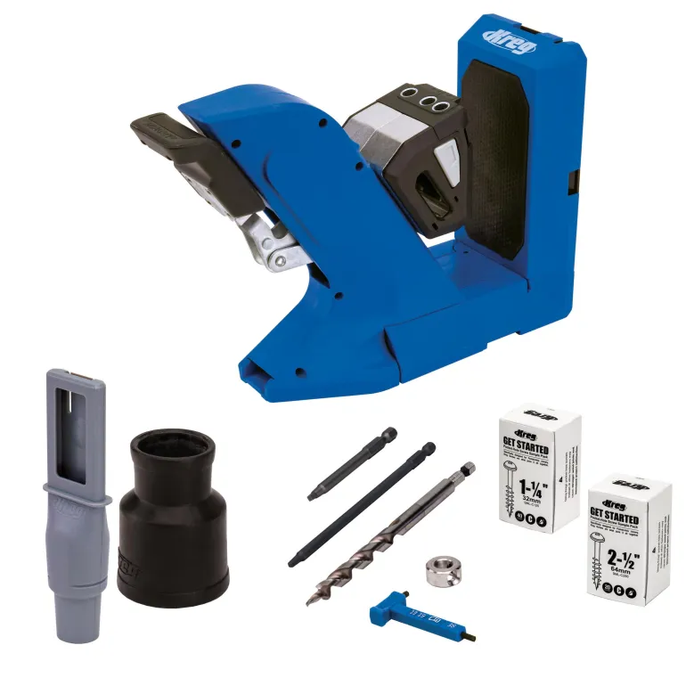 Kreg Pocket-Hole Jigi 720 tekee rakentamisesta tehokasta. Kiinnitä materiaali Automaxxilla, joka sopeutuu automaattisesti materiaalin paksuuteen. Materiaaleille, joiden paksuus on 13-38 mm väliltä. Pidennettävät tukijalat mahdollistavat vakaan työskentelyn suurten kappaleiden kanssa. GripMaxx Anti-Slip Material pitää projektikappaleen tukevasti paikallaan, joten sinun ei tarvitse koskaan huolehtia sen liikkumisesta porattaessa. Kiinnittimen avulla voit liittää pölynimurin ja pitää työpinnan pölyttömänä. Sisäänrakennettu työkalusäilytys pitää tarvikkeet, kuten kuusiokoloavaimen ja poranterät, käden ulottuvilla.