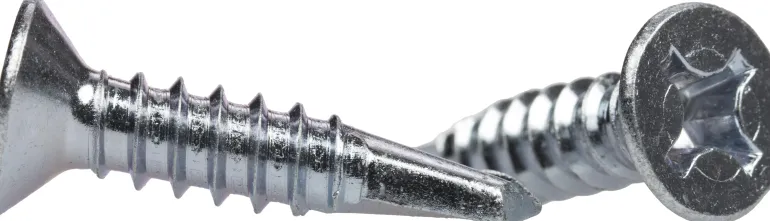 Itseporautuva ja itsekierteittävä ruuvi. Ruuvi poraa oman reikänsä ja puristaa kierteet materiaaliin.