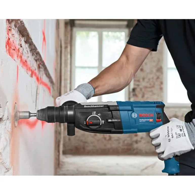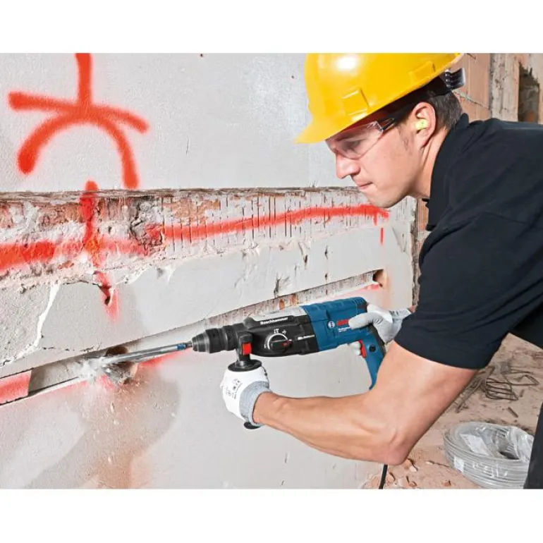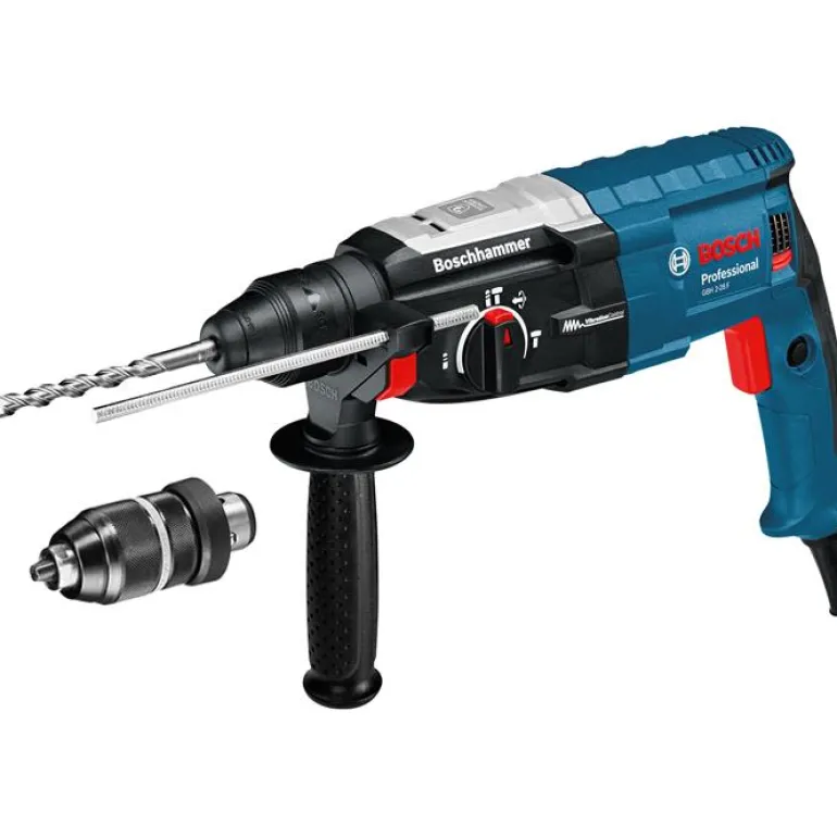 Akkuporavasara 880W, varustettu SDS-Plus-istukalla. Hyvä piikkausteho, iskuenergia 3,2 J iskua kohden. Erittäin nopea työkaluton vaihto SDS-plus-istukan ja pikaistukan välillä