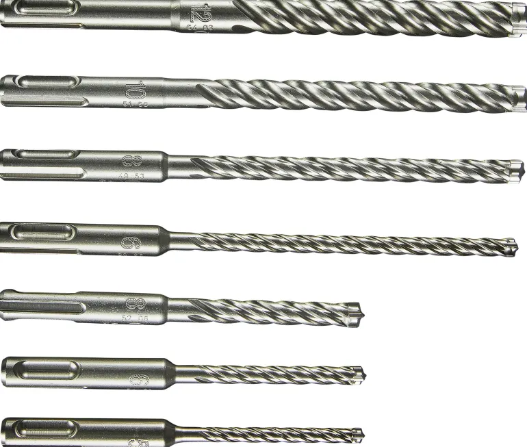 Laadukas 7-osainen, nelileikkuinen NEMESIS II -teräsarja SDS-PLUS- kiinnitteisille poravasaroille. Kovapalakärki (keskityskärki).