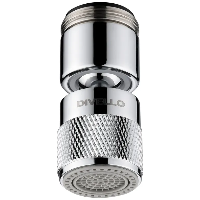 Pallonivelellä varustettu poresuutin keittiöhanoihin (sisäkierre M22 x 1 mm tai ulkokierre M24 x 1 mm). DIVELLO ORIGINAL™: Kaikkien vesikalusteiden kanssa yhteensopiva ja optimoitu alkuperäistuote. DIVELLO FULL FLOW S-TECH™: Parantaa veden käyttömukavuutta rajoittamatta vedenvirtausta. Koe miellyttävän voimakas vesisuihku ja optimaalinen huuhtelumukavuus. Kalkinmuodostusta vähentävät sisäosat. Shower Spray: Voit vaihtaa suoran suihkun ja leveän suihkun välillä miellyttävällä kiertosäätimellä.
