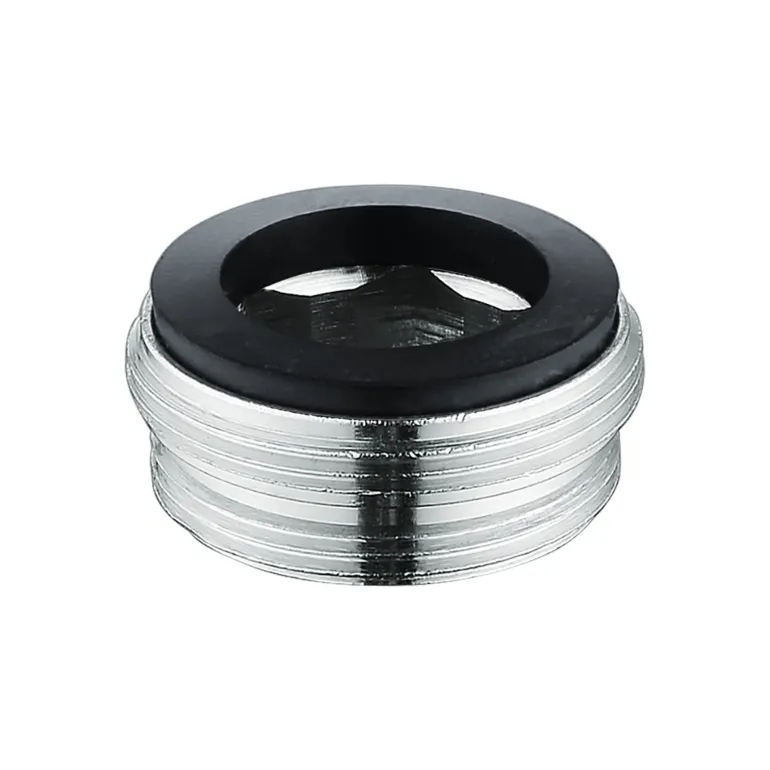 DIVELLO-sovitin keittiö- ja pesuallashanojen poresuuttimiin (ulkokierre M24 x 1 mm–ulkokierre M22 x 1 mm). Sovitin M24-sisäkierteen muuntamiseksi M22-ulkokierteeksi.