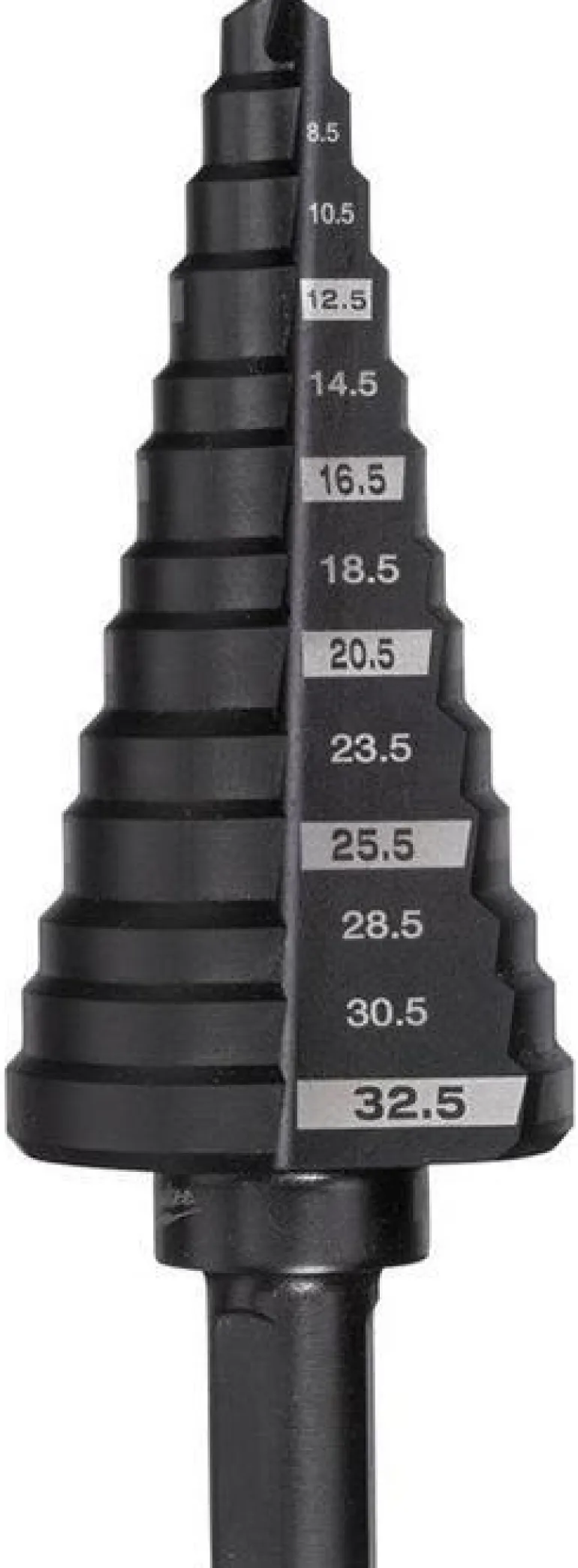13-askeleinen askelpora – poraa monia kokoja samalla terällä. Sopii mm. olemassa olevien reikien avartamiseen. Laserilla kaiverretut kokomerkinnät takaavat merkintöjen näkymisen pitkään.