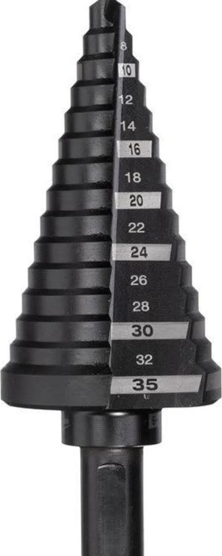 14-askeleinen askelpora – poraa monia kokoja samalla terällä. Sopii mm. olemassa olevien reikien avartamiseen. Laserilla kaiverretut kokomerkinnät takaavat merkintöjen näkymisen pitkään.