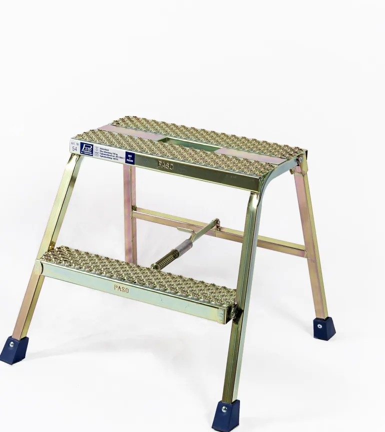 Keltaiset kromatut teräsprofiilit. Leveys 450 mm. Hyväksytty standardin EN131 mukaisesti. Täyttää Ruotsin työympäristölaitoksen määräykset AFS 2004:3.