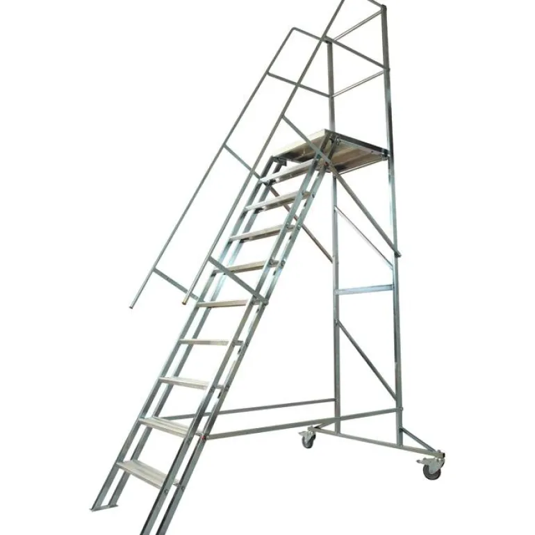 - Pyörillä, työskentelytasolla ja turvakaiteilla varustetut tikkaat.