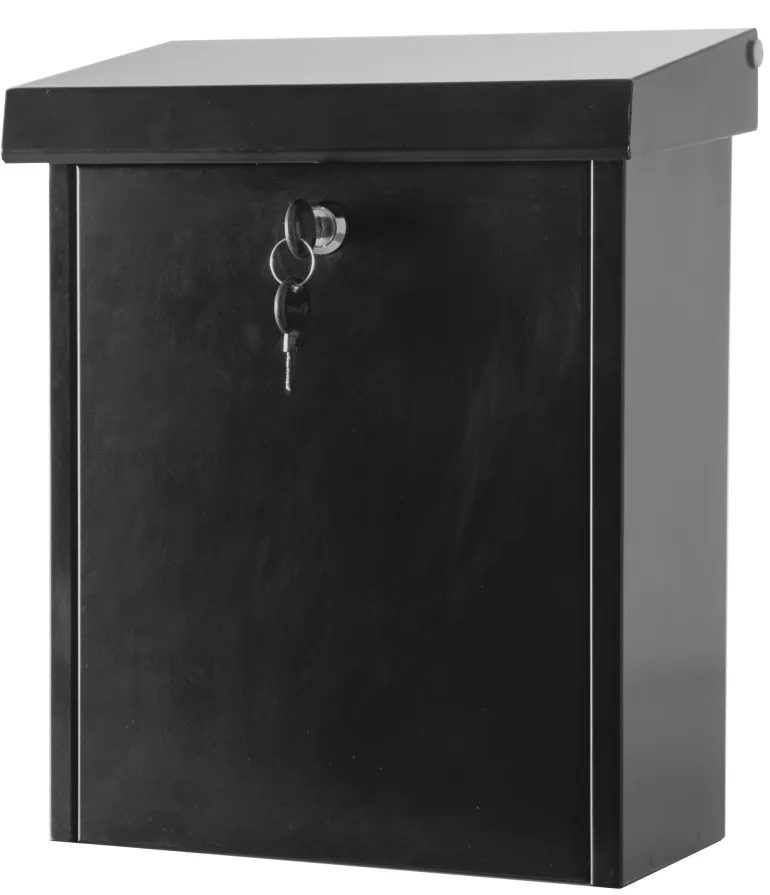 Lukittava postilaatikko skandinaavisella muotoilulla päivittäiseen postin käsittelyyn. Jauhemaalattua teräslevyä. Esiporatut reiät kiinnitystä varten.