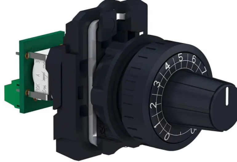 Potentiometri Harmony – XB5. Ø 22 mm:n pyöreällä ja nelikulmaisella muovikauluksella varustetut muovipainikkeet, kytkimet, merkkivalot. Kotelointi jopa IP 66, IP69K.