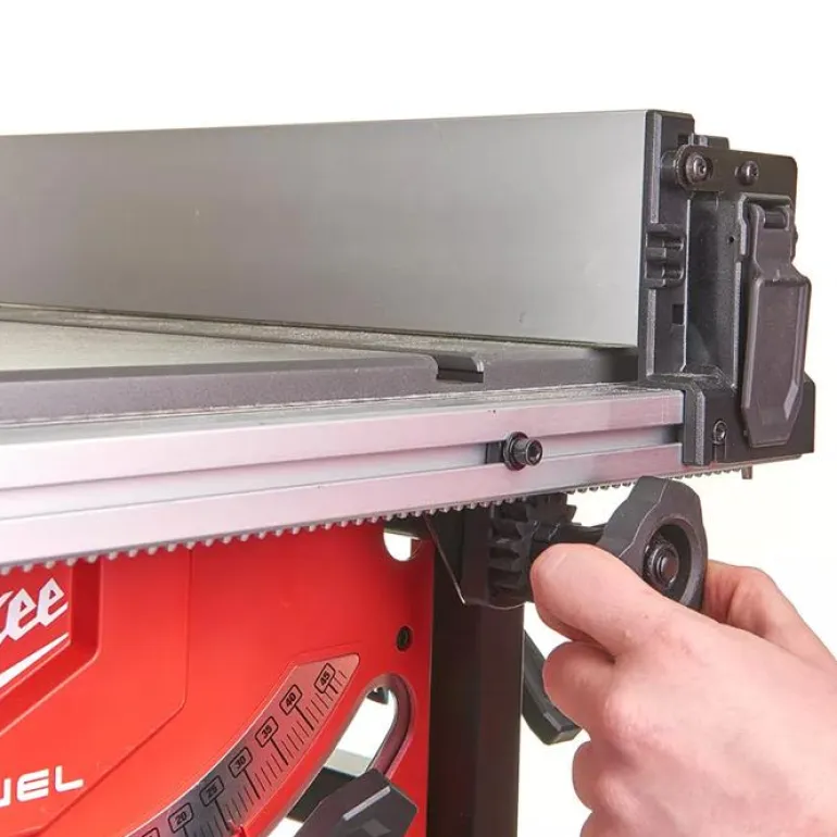 - Teline- ja hammaspyörän säädeltävä sahausohjain mahdollistaa aidan säätämisen tarkasti ja helposti sahan etuosasta, mikä takaa 622 mm sahauskapasiteetin