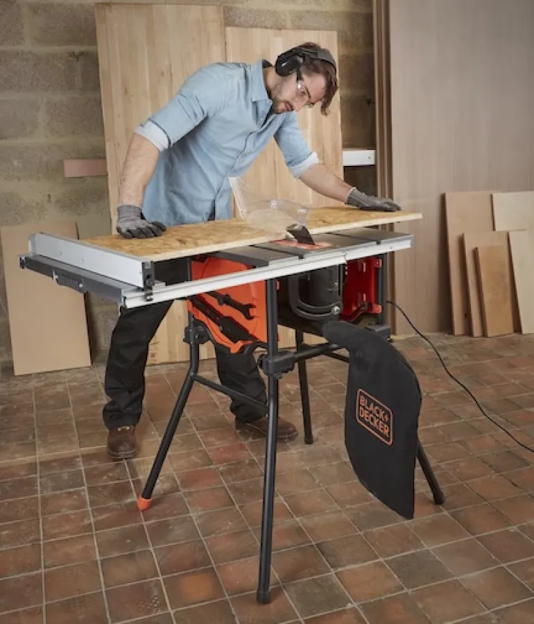 Black & Decker BES720-QS on tehokas 1800W pöytäsaha, jonka terän halkaisija on 254 mm, leikkuusyvyys 85 mm ja nopeus 4800 kierr./min. Tarkoille, suorille ja siisteille leikkauksille 305 mm asti. BES720-QS sopii täydellisesti suurten puukappaleiden, lattialautojen tai portaiden halkaisemiseen ja leikkaamiseen.