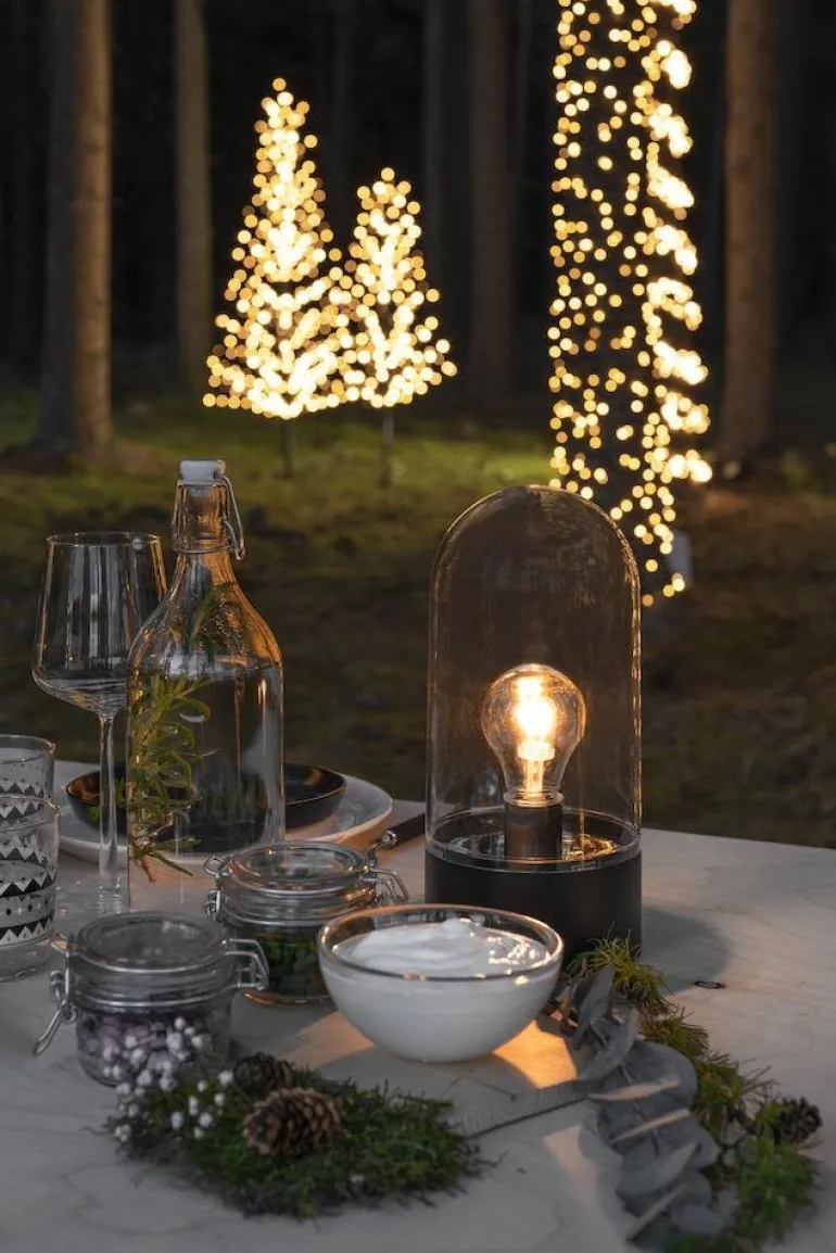 Pöytävalaisin, joka on kaunis sisustukseen. Virtalähteenä paristot. Sisäänrakennettu 8 tunnin ajastin ja vaihdettava LED-valo. Lyhty on 27 cm korkea.