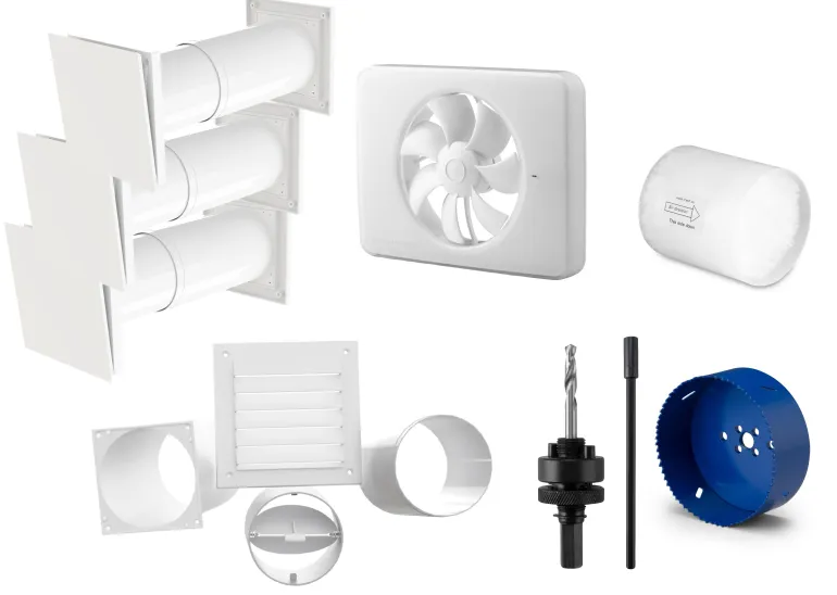 Pakkaukseen kuuluu venttiili, teleskooppinen läpivientiputki ja ulkosäleikkö. Sisäventtiili ja ulkosäleikkö kiinnittyy suoraan sisä- ja ulkoyhteisiin. Venttiilin sisäosassa on tehokas kondensaatioeriste, suodatin sekä kansi, jonka kulmaa kääntämällä säädetään ilman virtausta. Teleskooppikanavan pituus on 185 – 340 mm, halkaisija 98/104 mm. Kanavan voi asentaa jopa 150 mm:n paksuiseen seinään lyhentämällä molempia kanavia päistä, jolloin teleskooppiominaisuus säilyy. Ulkosäleikkö on valmistettu ympäristöystävällisestä PP-muovista.