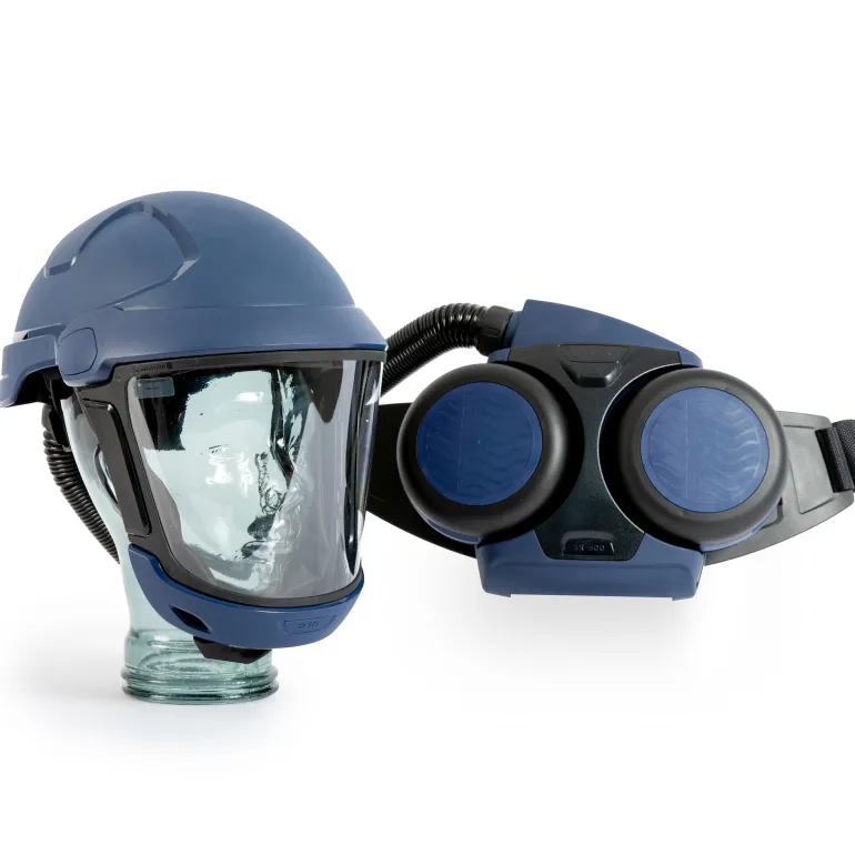 Sundström puhallinpaketti SR 500/SR 575 (H06-9110), joka sisältää SR 500 -puhaltimen, SR 575 -suojakypärän visiireineen ja muita lisätarvikkeita. Sarja sisältää SR 500 -puhaltimen, SR 575 -suojakypärän visiireineen, STD-akun, SR 513 -akkulaturin, SR 508 -hihnan, 2 kpl SR 510 P3 R -hiukkassuodattimia, 2 kpl suodattimen liitoskappaleita, 10 kpl SR 221 -esisuodattimia, 2 kpl esisuodattimen pidikkeitä, virtausmittarin, pistokesarjan, puhdistusliinan ja käyttöohjeet.