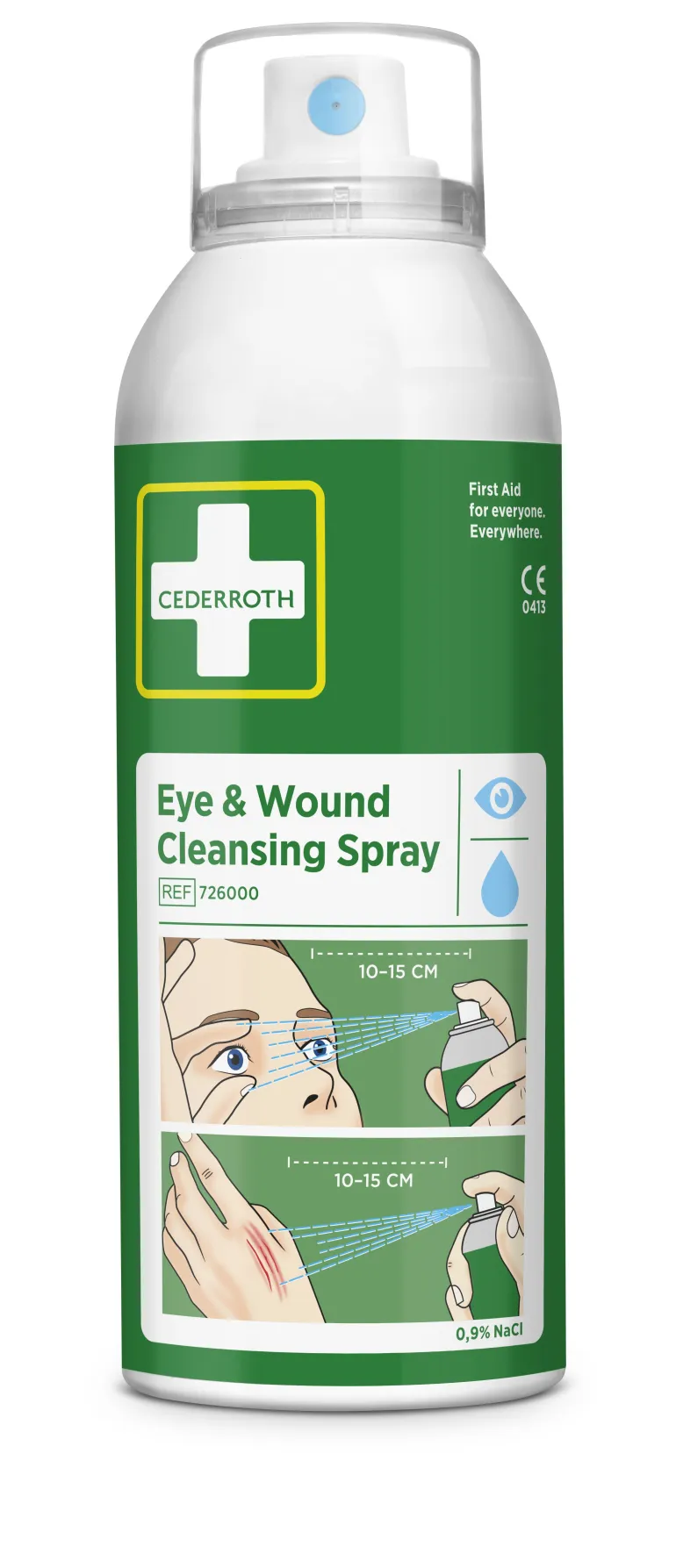 Silmien ja haavojen puhdistusspray (150 ml), steriiliä keittosuolaliuosta, säilöntäaineeton. Spray pölyn ja lian huuhteluun silmistä ja haavoista. Spraypullossa on tasainen suihku ja yhteensä 5 minuutin huuhteluaika. Toimii tehokkaana apuna mm. pintahaavojen puhdistuksessa. Voidaan käyttää useita kertoja, ja huuhteluneste pysyy steriilinä viimeiseen pisaraan saakka.