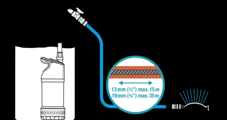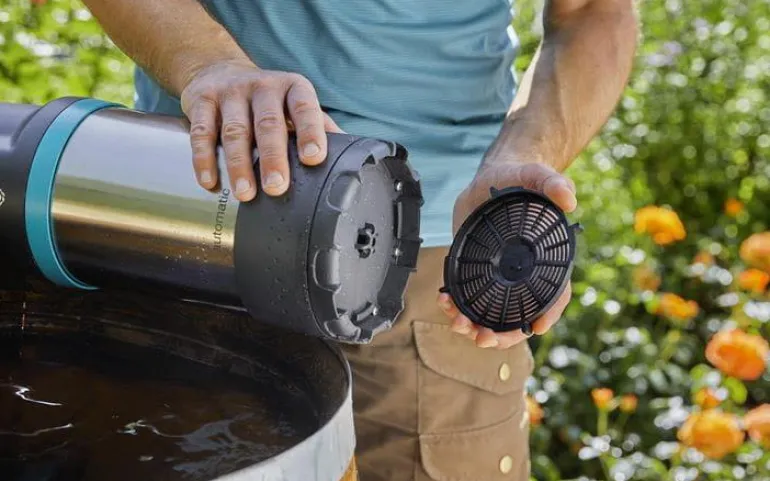 Pumpussa on automaattinen on/off-toiminto automaattista toimintaa ja kuivakäynnin estoa varten. Automaattitoiminto käynnistää ja sammuttaa pumpun automaattisesti silloin, kun vettä tarvitaan tai veden tarve loppuu. Voidaan käyttää myös kasteluohjaimen kanssa. Integroitu suodatin on helppo puhdistaa ja estää pumppua ja siihen liitettyjä laitteita likaantumiselta tai vaurioitumiselta. Kevyestä ja kestävästä alumiinista valmistettu patentoitu teleskooppiputki voidaan helposti ja nopeasti säätää juuri sopivalle korkeudelle sadevesisäiliöön nähden (760–960 mm). Sen avulla voit helposti johtaa veden tynnyrin reunan yli – ilman läikkymistä ja letkun taittumista. Mukana tulevan säätöventtiilin avulla voit muuttaa virtausmäärää tai sulkea veden virtauksen letkuun kokonaan.