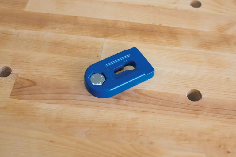 KREG KBCBA mahdollistaa KREG-penkkipuristimien tehon ja helpon käytön melkein millä tahansa työpinnalla. KREG Bench Clamp Base kiinnitetään halkaisijaltaan 20 mm:n reikiin, joko KREG KWS1000-INT-työpöydälle tai työpenkille, johon olet itse porannut reiät. Voit kiinnittää ja tehdä säätöjä nopeasti lukituspainikkeella. Kun olet valmis, voit nostaa ja irrottaa Bench Clamp Base-penkkipuristimen ja saada tilaa muille työkaluille työpöydälläsi.