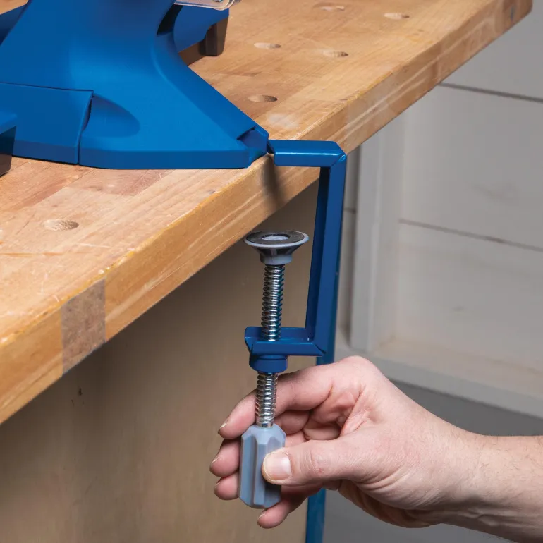 Käytä Pocket-Hole Jig Clamp-työkalua kiinnittääksesti 500- ja 700-sarjan Pocket-Hole Jigit työasemaasi. Se on myös yhteensopiva Pocket-Hole Jig 720- ja 720PRO-työkalujen kanssa, mikä lisää porausturvallisuutta.