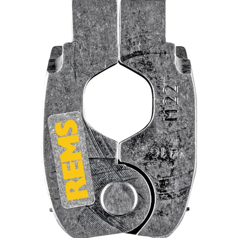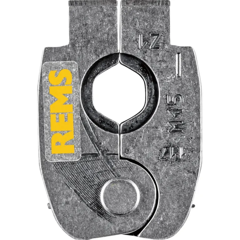 REMS PR-2B on puristusrengas, tyyppi M28, kallistus 45°, 2 puristusleukaa puristusleukojen turvallista sijoittamista varten vaikeasti tavoitettaviin kohteisiin 45°:n kallistuksen ansiosta. Tarvitaan välipihdit Z1/Z1 Mini.