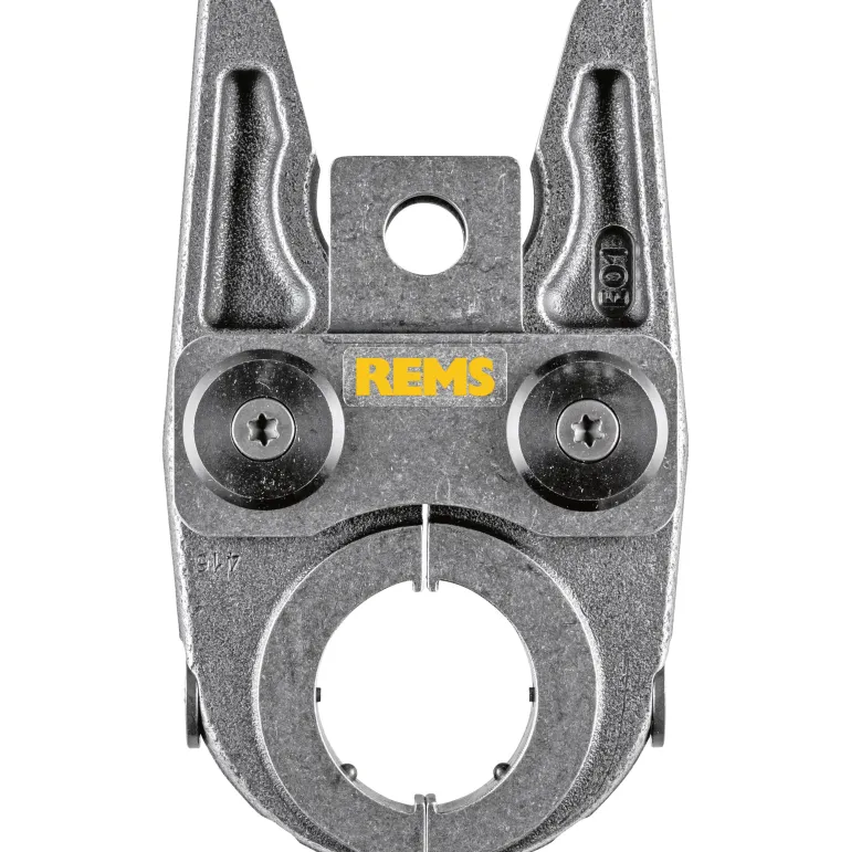 Puristusleuka Basic E 01 sisäosia varten. Puristusleuka sopii käytettäväksi REMS-radiaalipuristimilla (ei sovi malleihin REMS Mini-Press ACC, REMS Mini-Press 22 V ACC ja REMS Mini-Press S 22 V ACC) ja muun merkkisillä yhteensopivilla radiaalipuristimilla.