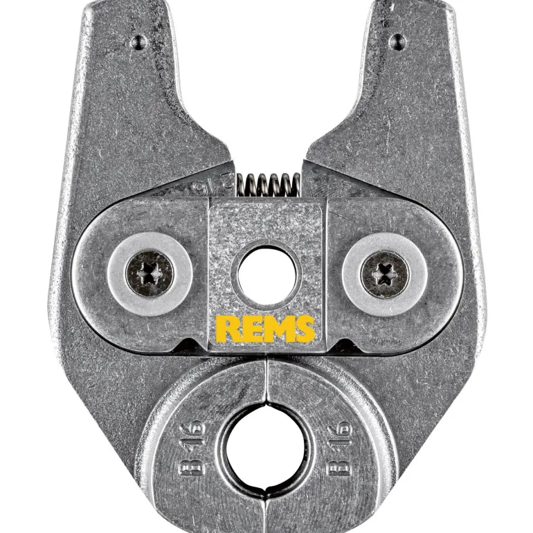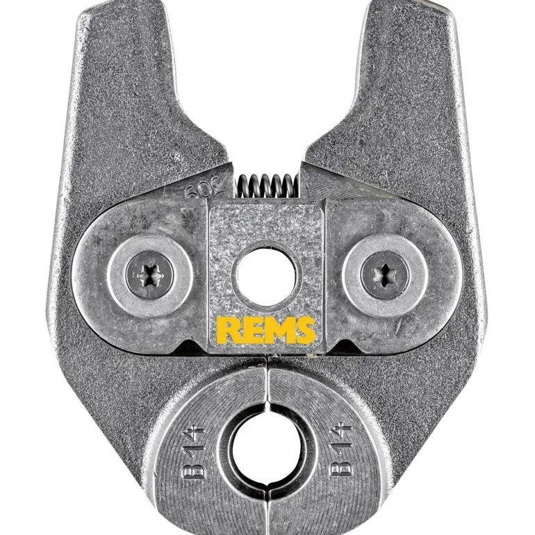 REMS 578466 Mini on kääntyvä yksilohkoinen puristusleuka, B-kuvio, tyyppi B 14 (PZ-2B). Puristusleuassa on erittäin kestävä, kompakti ja kevyt rakenne erikoissuunnitellun puristuspihtiliitännän ansiosta. Käytetään koneilla REMS Mini-Press ACC ja REMS Mini-Press 22 V ACC. Puristuskuviot ovat järjestelmäkohtaisia ja vastaavat kyseisen puristusmuhvijärjestelmän puristuskuvioita. Tämä takaa moitteettoman yhteensopivuuden järjestelmän kanssa ja varman puristuksen. Puristusleuassa on erittäin tarkka ja mekaanisesti tarkka CNC-koneistettu pyöristetty puristuskuvio. Tällä tavoin valmistustoleranssit ovat huomattavasti pienempiä kuin vain valamalla valmistetuissa puristusleuoissa.