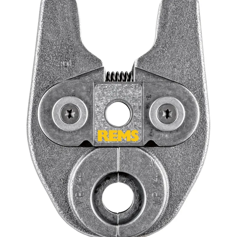 REMS 578480 Mini on kääntyvä yksilohkoinen puristusleuka, VP-kuvio, tyyppi VP 14 (PZ-2B). Puristusleuassa on erittäin kestävä, kompakti ja kevyt rakenne erikoissuunnitellun puristuspihtiliitännän ansiosta. Käytetään koneilla REMS Mini-Press ACC ja REMS Mini-Press 22 V ACC. Puristuskuviot ovat järjestelmäkohtaisia ja vastaavat kyseisen puristusmuhvijärjestelmän puristuskuvioita. Tämä takaa moitteettoman yhteensopivuuden järjestelmän kanssa ja varman puristuksen. Puristusleuassa on erittäin tarkka ja mekaanisesti tarkka CNC-koneistettu pyöristetty puristuskuvio. Tällä tavoin valmistustoleranssit ovat huomattavasti pienempiä kuin vain valamalla valmistetuissa puristusleuoissa.