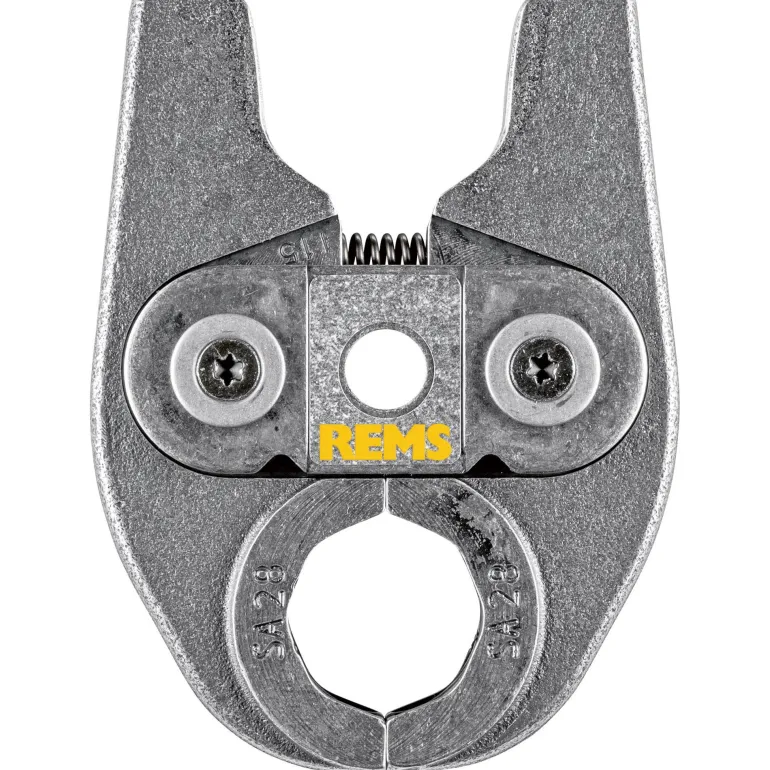 REMS 578510 Mini on kääntyvä yksilohkoinen puristusleuka, SA-kuvio, tyyppi SA 12 (PZ-2B). Puristusleuassa on erittäin kestävä, kompakti ja kevyt rakenne erikoissuunnitellun puristuspihtiliitännän ansiosta. Käytetään koneilla REMS Mini-Press ACC ja REMS Mini-Press 22 V ACC. Puristuskuviot ovat järjestelmäkohtaisia ja vastaavat kyseisen puristusmuhvijärjestelmän puristuskuvioita. Tämä takaa moitteettoman yhteensopivuuden järjestelmän kanssa ja varman puristuksen. Puristusleuassa on erittäin tarkka ja mekaanisesti tarkka CNC-koneistettu pyöristetty puristuskuvio. Tällä tavoin valmistustoleranssit ovat huomattavasti pienempiä kuin vain valamalla valmistetuissa puristusleuoissa.