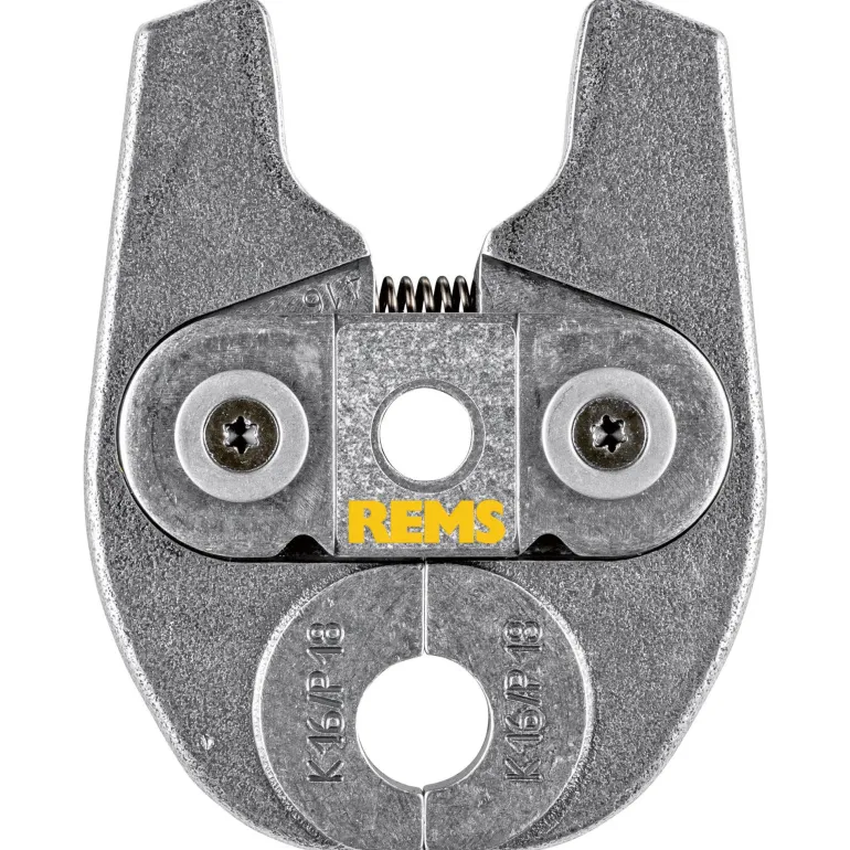 REMS 578592 Mini on kääntyvä yksilohkoinen puristusleuka, K-kuvio, tyyppi K16/P18 (PZ-2B). Puristusleuassa on erittäin kestävä, kompakti ja kevyt rakenne erikoissuunnitellun puristuspihtiliitännän ansiosta. Käytetään koneilla REMS Mini-Press ACC ja REMS Mini-Press 22 V ACC. Puristuskuviot ovat järjestelmäkohtaisia ja vastaavat kyseisen puristusmuhvijärjestelmän puristuskuvioita. Tämä takaa moitteettoman yhteensopivuuden järjestelmän kanssa ja varman puristuksen. Puristusleuassa on erittäin tarkka ja mekaanisesti tarkka CNC-koneistettu pyöristetty puristuskuvio. Tällä tavoin valmistustoleranssit ovat huomattavasti pienempiä kuin vain valamalla valmistetuissa puristusleuoissa.