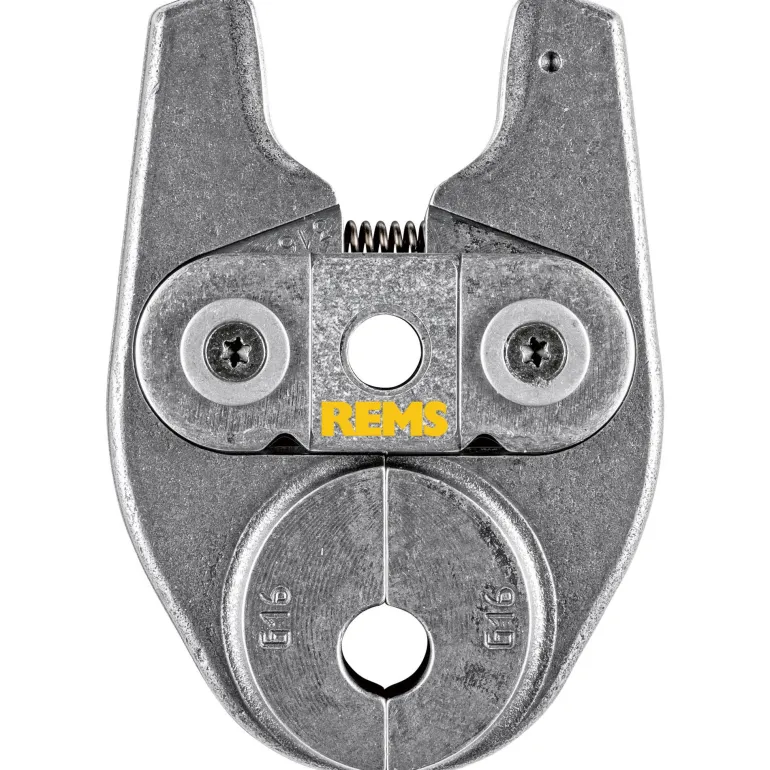REMS 578452 Mini on kääntyvä yksilohkoinen puristusleuka, G-kuvio, tyyppi G 40 (PZ-2B). Puristusleuassa on erittäin kestävä, kompakti ja kevyt rakenne erikoissuunnitellun puristuspihtiliitännän ansiosta. Käytetään koneilla REMS Mini-Press ACC ja REMS Mini-Press 22 V ACC. Puristuskuviot ovat järjestelmäkohtaisia ja vastaavat kyseisen puristusmuhvijärjestelmän puristuskuvioita. Tämä takaa moitteettoman yhteensopivuuden järjestelmän kanssa ja varman puristuksen. Puristusleuassa on erittäin tarkka ja mekaanisesti tarkka CNC-koneistettu pyöristetty puristuskuvio. Tällä tavoin valmistustoleranssit ovat huomattavasti pienempiä kuin vain valamalla valmistetuissa puristusleuoissa.