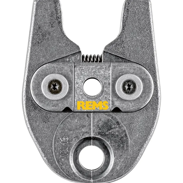 REMS 578554 Mini on kääntyvä yksilohkoinen puristusleuka, VX-kuvio, tyyppi VX 20 (PZ-2B). Puristusleuassa on erittäin kestävä, kompakti ja kevyt rakenne erikoissuunnitellun puristuspihtiliitännän ansiosta. Käytetään koneilla REMS Mini-Press ACC ja REMS Mini-Press 22 V ACC. Puristuskuviot ovat järjestelmäkohtaisia ja vastaavat kyseisen puristusmuhvijärjestelmän puristuskuvioita. Tämä takaa moitteettoman yhteensopivuuden järjestelmän kanssa ja varman puristuksen. Puristusleuassa on erittäin tarkka ja mekaanisesti tarkka CNC-koneistettu pyöristetty puristuskuvio. Tällä tavoin valmistustoleranssit ovat huomattavasti pienempiä kuin vain valamalla valmistetuissa puristusleuoissa.