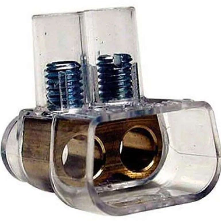 Kaksinkertainen puristusliitin liitäntäruuveilla. Liittimen nimellispinta-ala on 2 x 16 mm² ja nimellisjännite 450 V. Enimmäislämpötila +85°C. Läpinäkyvä polykarbonaattikotelo, messinkinen holkki ja sinkitty teräsruuvi.