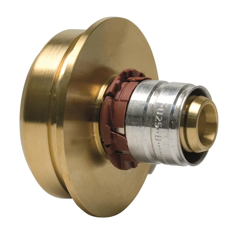 Puristusosa moduuliin RS2. Valmistettu sinkkikadon kestävästä messingistä, puristusholkki ruostumatonta terästä. Sisältää vuodonilmaisimen. Holkki on kiinnitetty liittimeen valkoisella pysäytysrenkaalla siten, että puristusleuka on puristusta varten oikeassa asennossa.