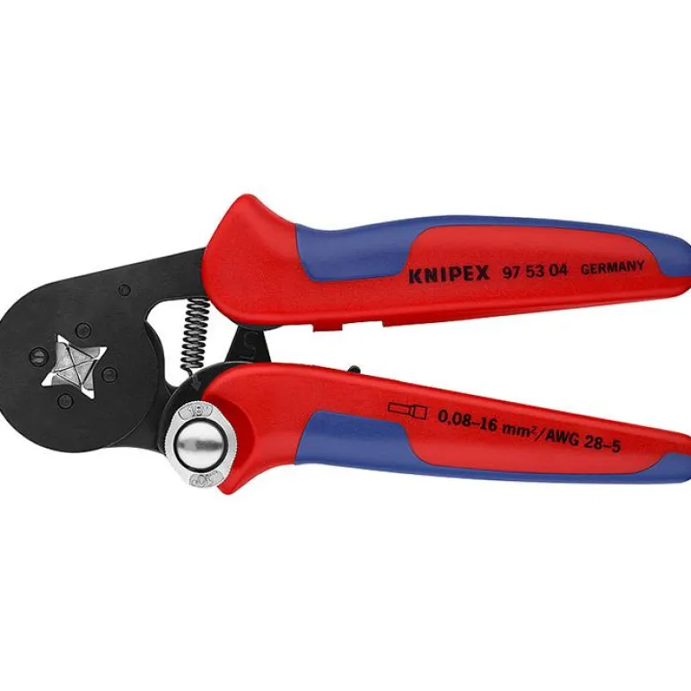 Mustatut puristuspihdit 180 mm, pääteholkkien puristamiseen DIN 46228 osan 1 + 4 mukaisesti. Pihdeissä on monikomponenttikahvakuoret, kapasiteetti 0,08–10 + 16 mm².