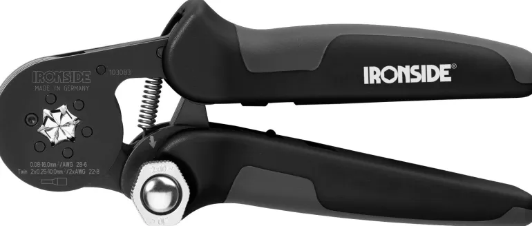 Ironside 103083 on puristuspihdit pääteholkeille (pääteholkin puristin). Automaattinen itsesäätö käytetyssä holkissa. Kuusikulmapuristus ahtaissa paikoissa oleviin liitäntöihin, 0,08-16 mm² (AWG 6) ja kaksoispäätyholkit jopa 2 x 10 mm² (AWG 2 x 8).