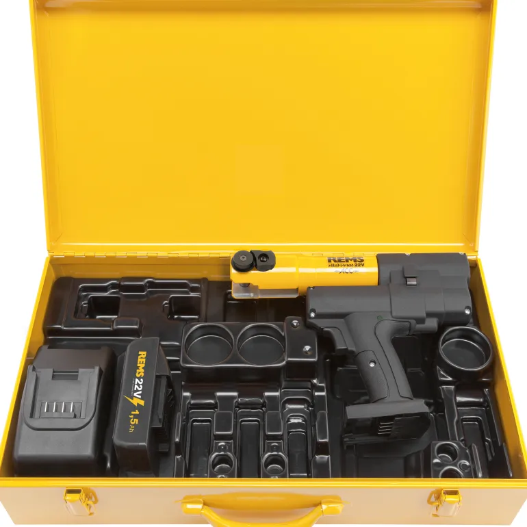 REMS Mini-Press on 22 V:n puristin automaattisella palautuksella, yleismallinen, kuparista, teräksestä ja ruostumattomasta teräksestä valmistettujen puristusliitosten valmistukseen, 35mm:iin asti, ja muoviputket 40 mm:iin asti. REMS-puristuspihtien käyttöön, Mini/puristusrenkaat. Kierrettävä puristustyökalun kiinnitys, automaattinen lukitus. Radiaalipuristin on nopea, kätevä akkukäyttöinen kone, jossa on pistoolikahva sekä integroitu LED-työvalo, joka valaisee työkappaleen. Mini-Press on varustettu Li-Ion 22 V -teknologialla, joka tarjoaa 50 % enemmän puristuksia kuin 14,4V:n Li-ion-akulla.