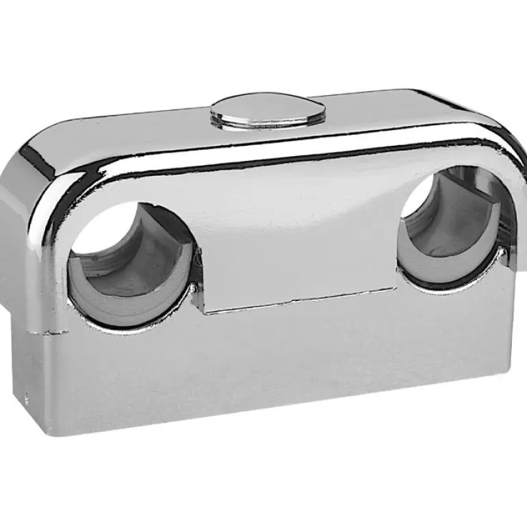 Kaksisosainen putkikiinnike kromatulla pinnalla. Sopii ulkohalkaisijaltaan 8-15 mm:n putkille. C/C etäisyys 40 mm. Mukana toimitetaan suojatulppa ruuvinreiän peittämiseen.