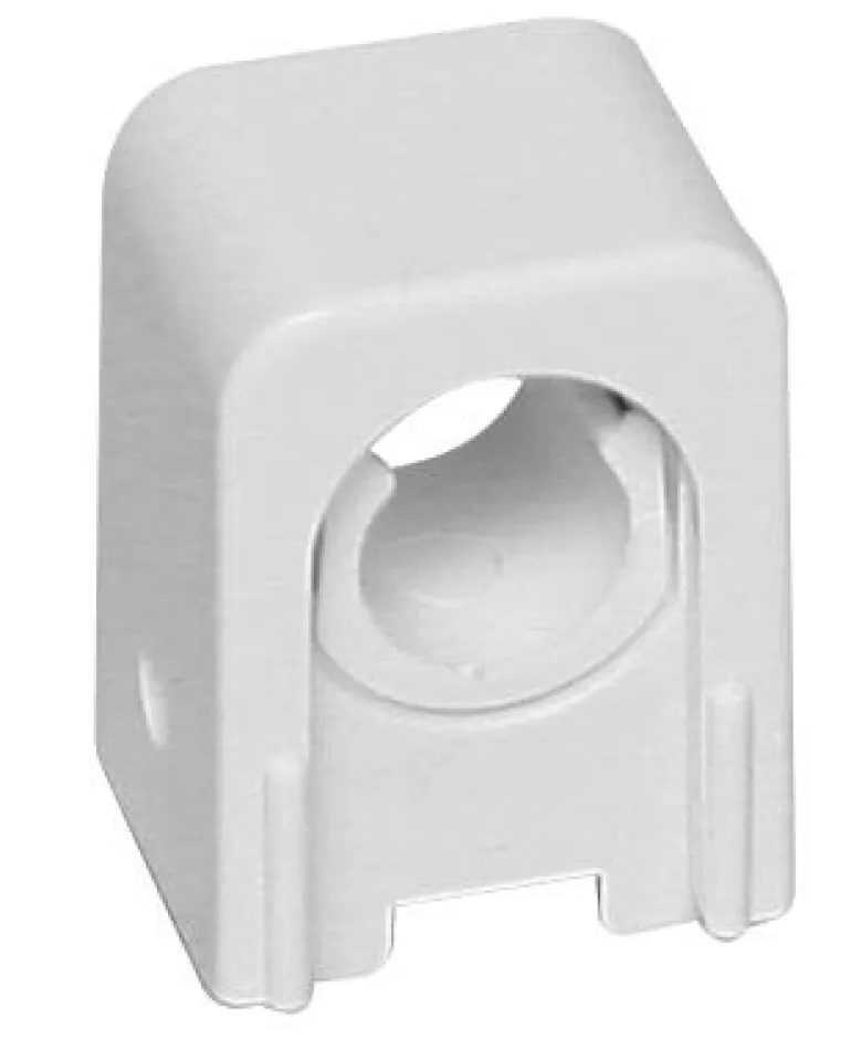 Valkoinen yksiosainen putkikiinnike ulkohalkaisijaltaan 12/15/16 mm:n putkille. Sisältää tiivistelevyn. Kiinnikkeen mitat ovat 33,8 x 24,8 x 22,75 mm ja C/V-etäisyys 20 mm.