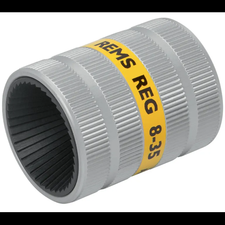 REMS REG on tukeva putkileikkuri putkien ulkopuoliseen ja sisäpuoliseen purseenpoistoon. Sopii ruostumattomasta teräksestä valmistettujen teräsputkien, muiden teräsputkien ja kupari-, messinki-, alumiini- ja muoviputkien Ø 8 – 35 mm Ø⅜ – 1⅜” käsittelyyn. REMS REG 8 – 35 – moniteräinen, maks. Ø 35 mm.