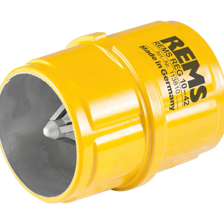 REMS REG 10-42 on tukeva täysmetallinen putkijyrsin ruostumattomasta teräksestä valmistettujen teräsputkien, muiden teräsputkien ja kupari-, messinki-, alumiini- ja muoviputkien Ø 10 – 42 mm Ø ½ – 1⅝” purseenpoistoon. Käyttö käsin tai sähköisesti.