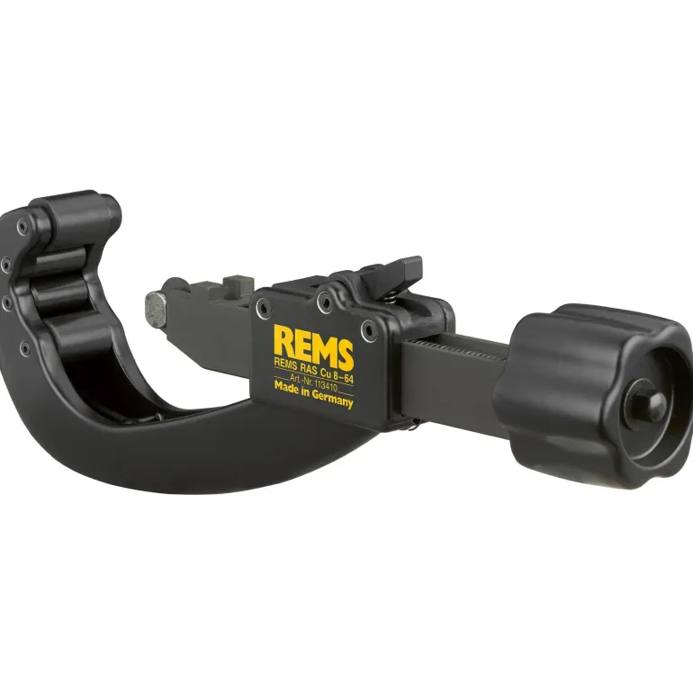REMS RAS Cu on kompakti putkileikkuri 8-42 mm:n kupariputkille. Teleskooppikaralla helppo ja nopea säätö molempiin suuntiin ja kompakti rakenne vaativaan käyttöön. Vakaa teleskooppikara, pitkä karan ohjain ja 4 erikoiskarkaistua vastapainerullaa. Tämä takaa tarkan ohjauksen putkea pitkin, helpon syötön, helpon leikkauksen ja tarkan, suorakulmaisen leikkauksen. Ergonomisesti muotoiltu, kätevä metallinen kiertokahva helpottaa työskentelyä ja pidentää käyttöikää. Erikoiskarkaistu leikkuupyörä, luotettava nuorrutuskarkaistu REMS-leikkuuteräs takaa pitkän käyttöiän.