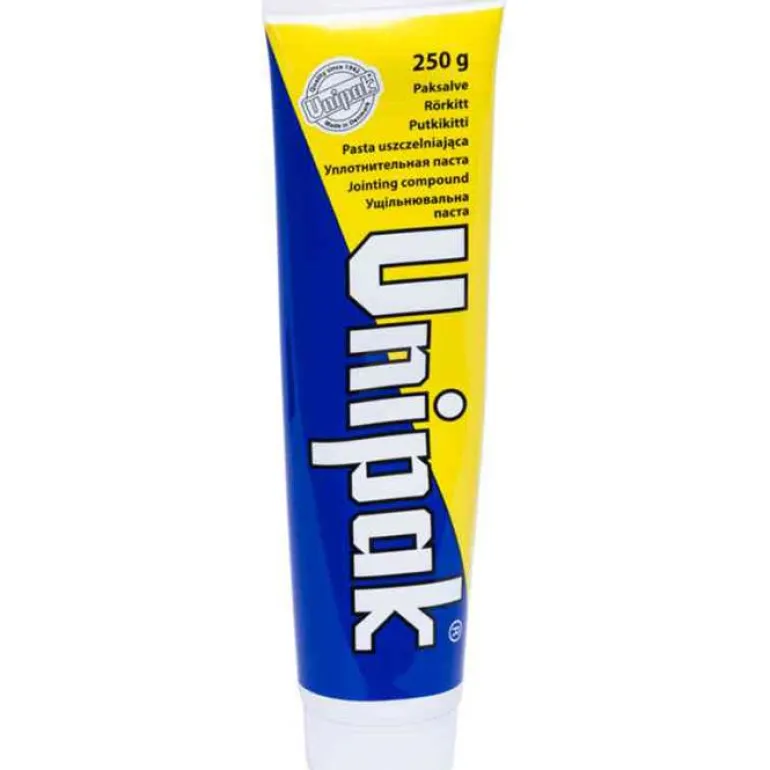 Yhdessä tiivistelangan/-pellavan kanssa Unipak tekee täysin tiiviit kierreliitokset tiivistettäessä laippoja ja kierteistettyjä putkia. Samalla se helpottaa kokoamista ja myöhemmin irrottamista.