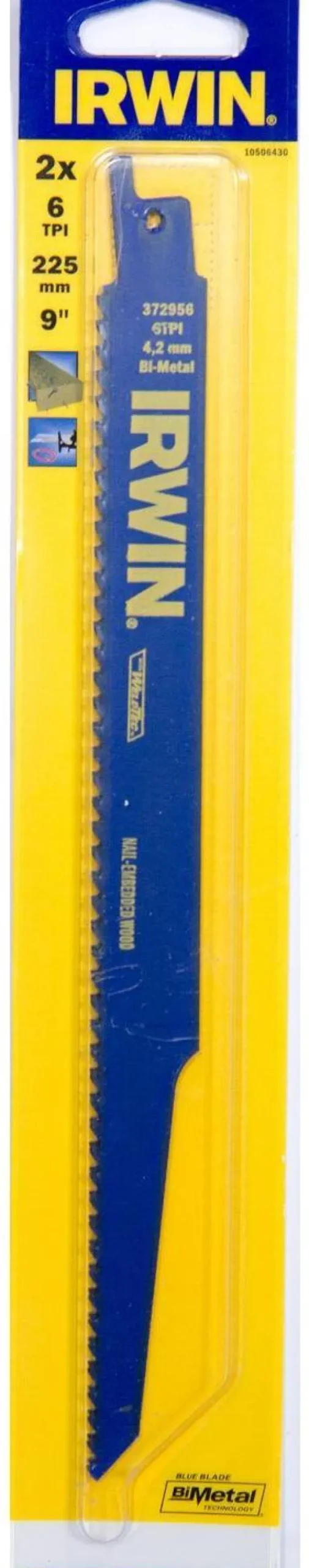 Irwin-puukkosahanterä, 225 mm, 6 TPI ja bimetallirakenne, joka pidentää terän käyttöikää, leikkaa nopeammin ja kestää vääntöä murtumatta. Suunniteltu kaikkien metallien sahaamiseen, mukaan lukien ei-rautametalliputket, ruostumaton teräs ja ohut metalli.