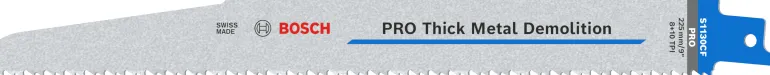 Bosch Professional PRO Thick Metal Demolition S1130CF puukkosahanterä, jonka kovat terät on liitetty joustavaan runkoon hitsaamalla bimetallia. Edistyksellinen 2 x 2 -hammasgeometria nopeaan leikkuuseen. Vankkatekoinen, paksu rakenne ja laadukasta, suoraa leikkuujälkeä tuottava terä. Pitkä käyttöikä raskaiden metallirakenteiden purkamisessa. Soveltuu metalliputkille ja -profiile sekä ei-rautametalleille.