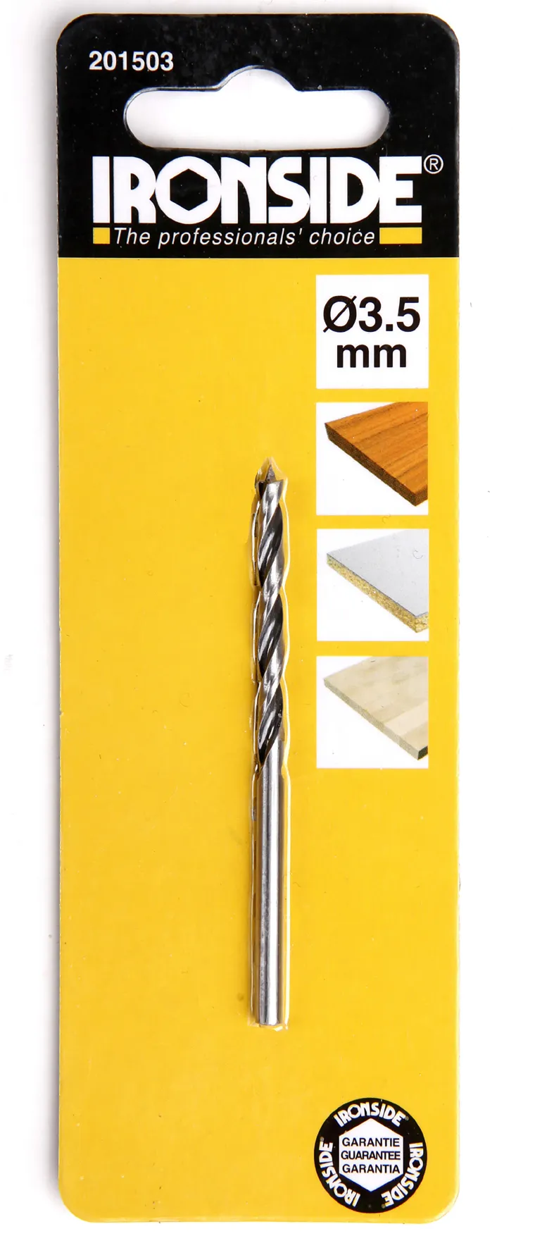 Puuporanterä 80 mm pitkä, kärjellä. Terän halkaisija on 4,5 mm ja poraussyvyys 47 mm.